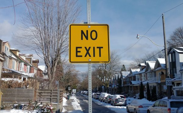 By the way, this is not an original idea. A citizen-led initiative mapped hundreds of Yes-Exit streets in Toronto. Dylan Reid, a founder of Walk Toronto who spearheaded the project notes that “No Exit” signs as we know is a clear evidence of car-centric planning: